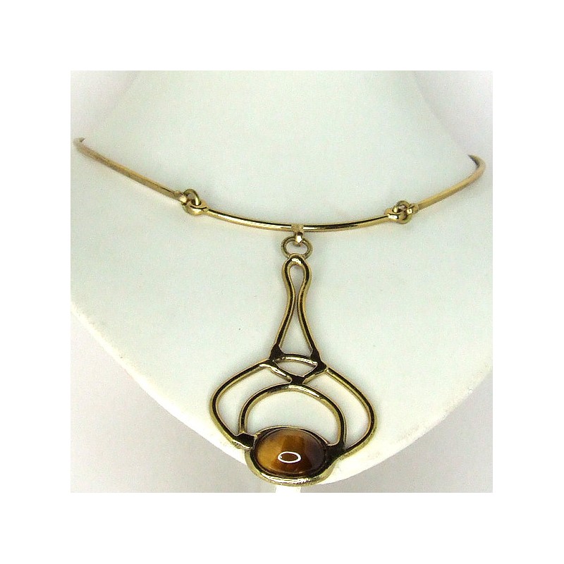 Brass copper necklace with stone